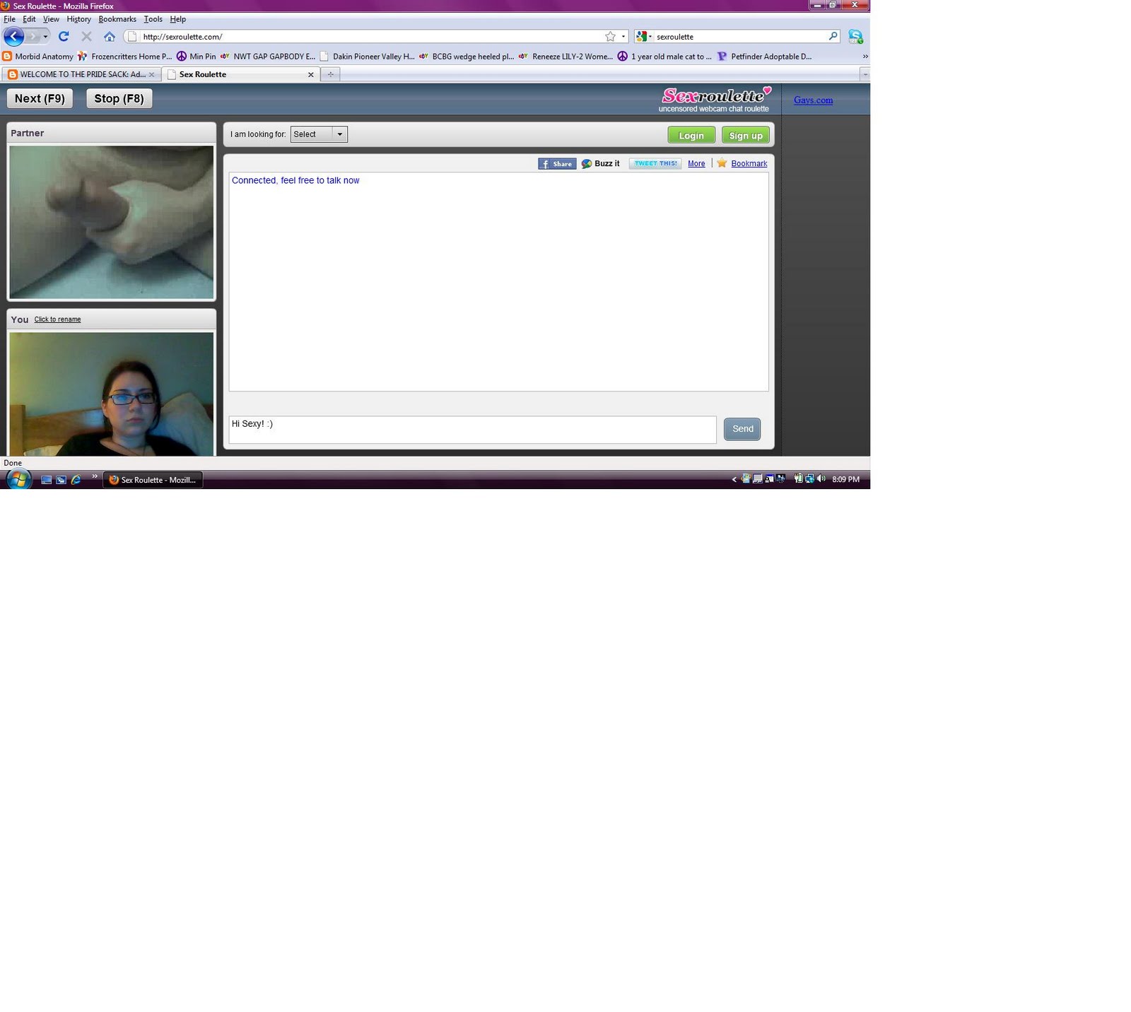 Chat/Sex-roulette has the capacity to be elevated to an abstract art form. I don't know if I should sit on my hands and wait or see this dream to fruition.
